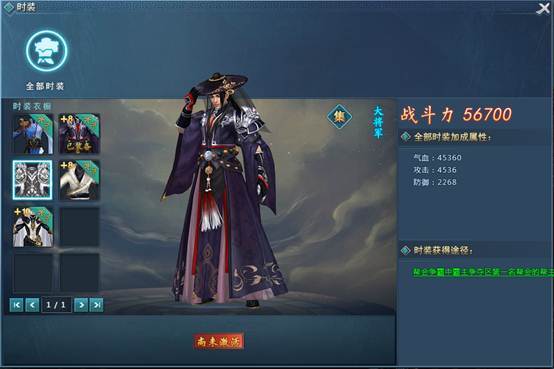 三、每套时装都有单独的属性,面板右侧则会统计全部时装的总属性加成