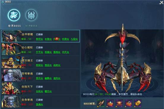 三、世界BOSS,每日16:00、21:40时刷新
