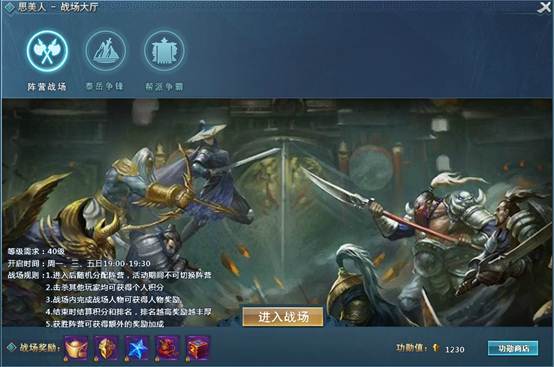 c) 战场内积分每达到一定阶段可以获得丰富奖励;