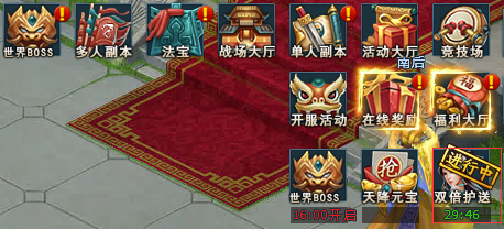 一、玩家等级达到40级后,可进行护送活动。每日的15:30-16:00和18:30-19:00为双倍护送时间,可获得双倍经验奖励。并且在15:30-16:00会开启帮派护送竞争。活动开启后可通过右上角的“活动大厅”和“活动图标”进入: