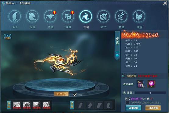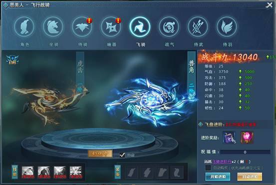 (3)飞骑进阶成功后,将获得更炫更酷的外型和更加强大的属性。