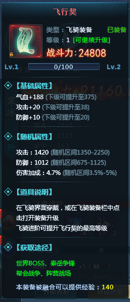 飞行契:增加飞骑的气血、攻击、防御、伤害加成属性;