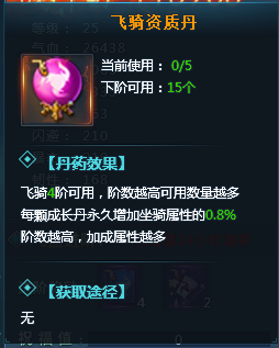 飞骑达到4阶后,将可以喂食资质丹,资质丹可以百分比增加飞骑的进阶属性;