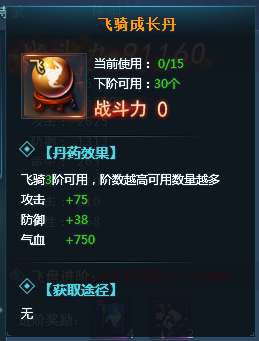 飞骑达到3阶后,将可以喂食成长丹,成长丹可以增加飞骑的进阶属性;